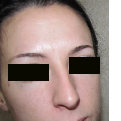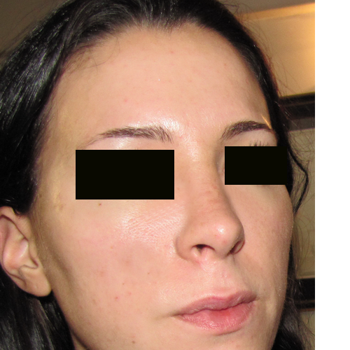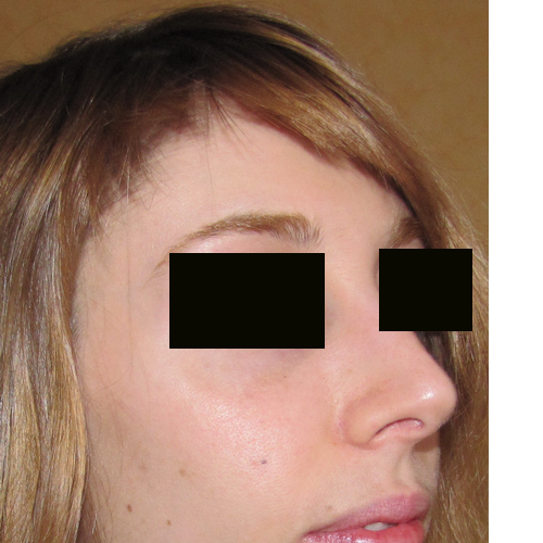 Photos d’augmentation des pommettes par mise en place d’implants malaires. Ces implants ont été introduits par une incision dans le cuir chevelu temporal. Cette cicatrice est invisible.